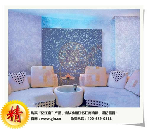 忆江南墙衣:“忆江南墙衣”是以天然纤维为主要原材料并加入各种环保材料,经过特殊的工艺处理制作而成,是一种环保性能优异的全新内墙装饰材料,其所具有的独特纹理质感和立体浮雕感,为人们营造出接近于自然的生活和工作空间,与现代人对个性生活的追求更相适应,特别适合儿童房的应用,在美化家居的同时,享受更多的浪漫与时尚。