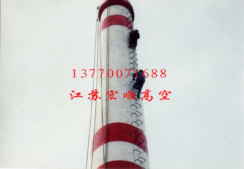 三、烟囱防腐:各种烟囱防腐、烟囱内壁脱硫、烟囱刷航标、烟囱刷色环、烟囱外壁刷涂料、铁塔、电视塔架、钢结构、钢烟囱、港口吊机、龙门吊、烟囱爬梯护网、烟囱安装平台、凉水塔等高空金属铁件油漆防腐。