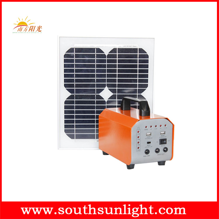 太阳能光伏发电系统是通过一套新能源技术将太阳能转变为电能的装置,解决照明和数码产品充电的基本用电需求。本产品采用一体机设计、是一个集照明、数码产品充电于一体的电力系统。电源采用高效率PWM 充电模式技术,实现了蓄电池充放电的智能化管理,过充过放保护功能有效的延长了蓄电池的使用寿命;外接LED灯泡照明和DC12V/USB 5V数码产品充电;太阳能板置于阳光下开启MAIN SWITCH开关即可实现对内置电池充电。