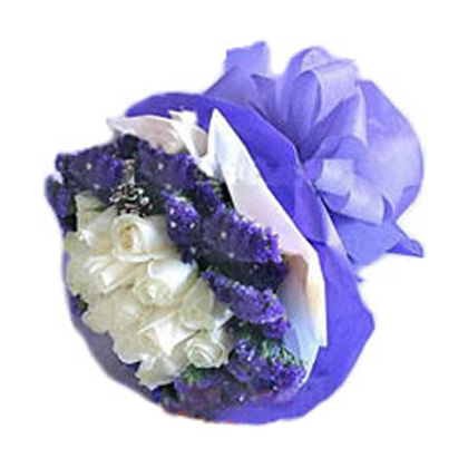 11枝白玫瑰,外围紫色勿忘我