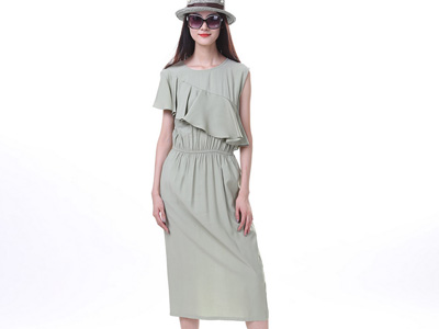 荷叶边雪纺连衣裙