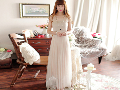 新款韩版女装 修身显瘦针织毛衣网纱长裙