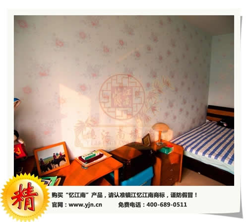 忆江南墙衣:“忆江南墙衣”是以天然纤维为主要原材料并加入各种环保材料,经过特殊的工艺处理制作而成,是一种环保性能优异的全新内墙装饰材料,其所具有的独特纹理质感和立体浮雕感,为人们营造出接近于自然的生活和工作空间,与现代人对个性生活的追求更相适应,特别适合儿童房的应用,在美化家居的同时,享受更多的浪漫与时尚。